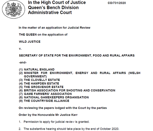 We may win in court, or we may not, but there is no doubt that there is a case to answer. If we were to be successful then this would have big impacts on Pheasant and Red-legged Partridge shooting in 2021.