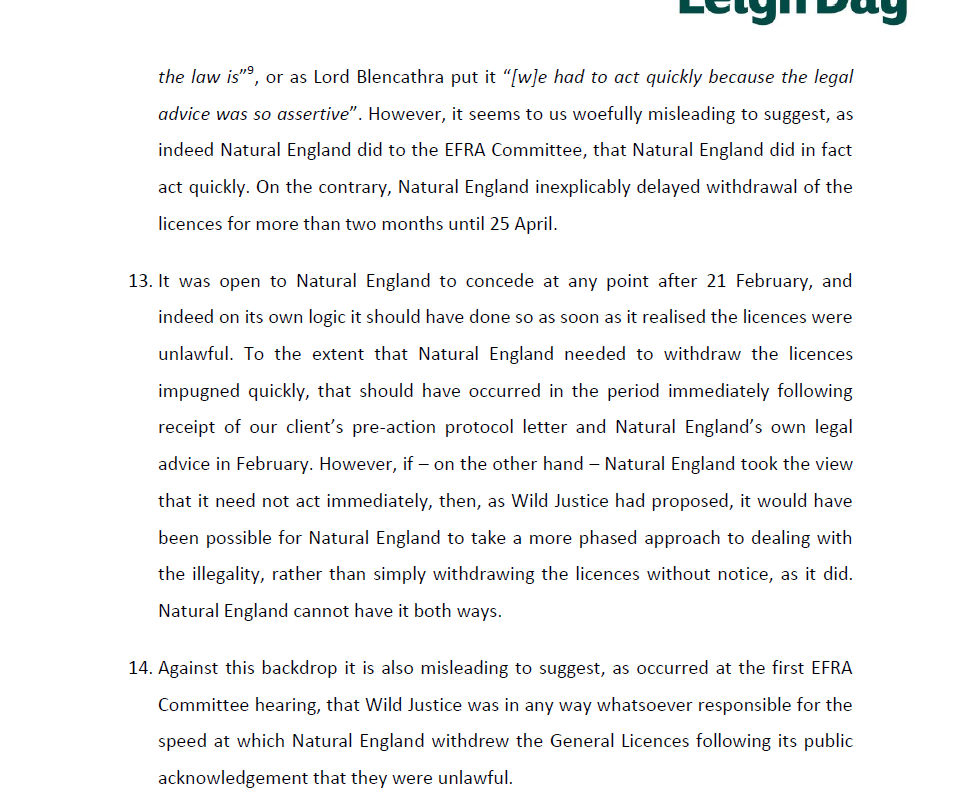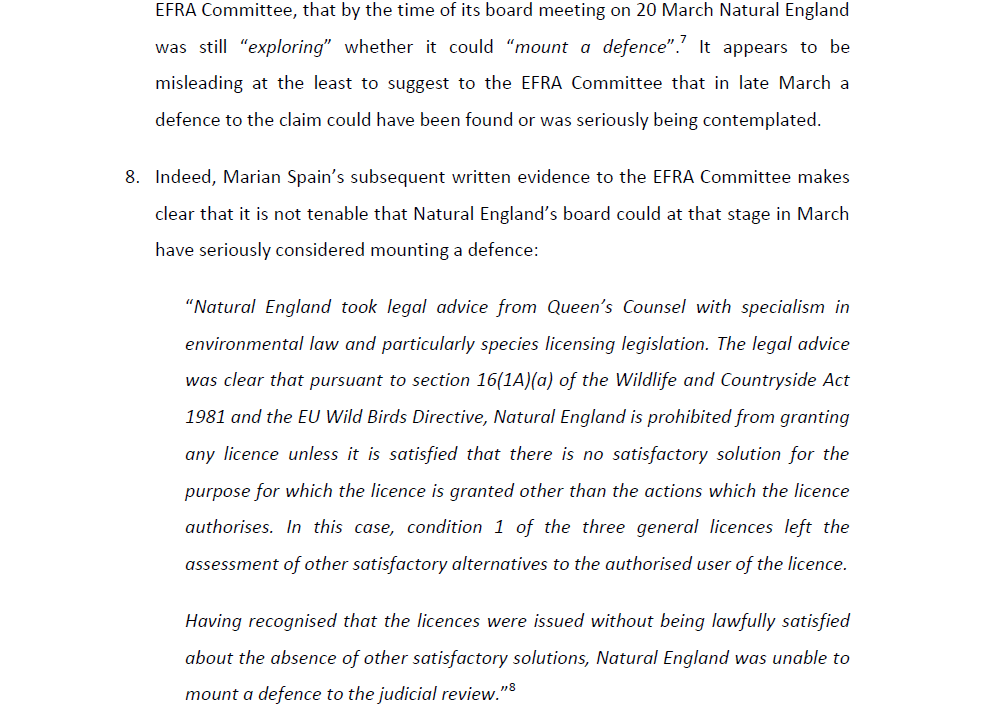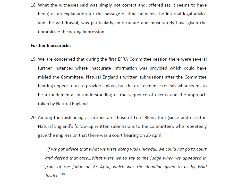 This letter was sent to Natural England yesterday and copied to the EFRA Committee.