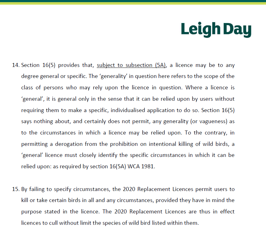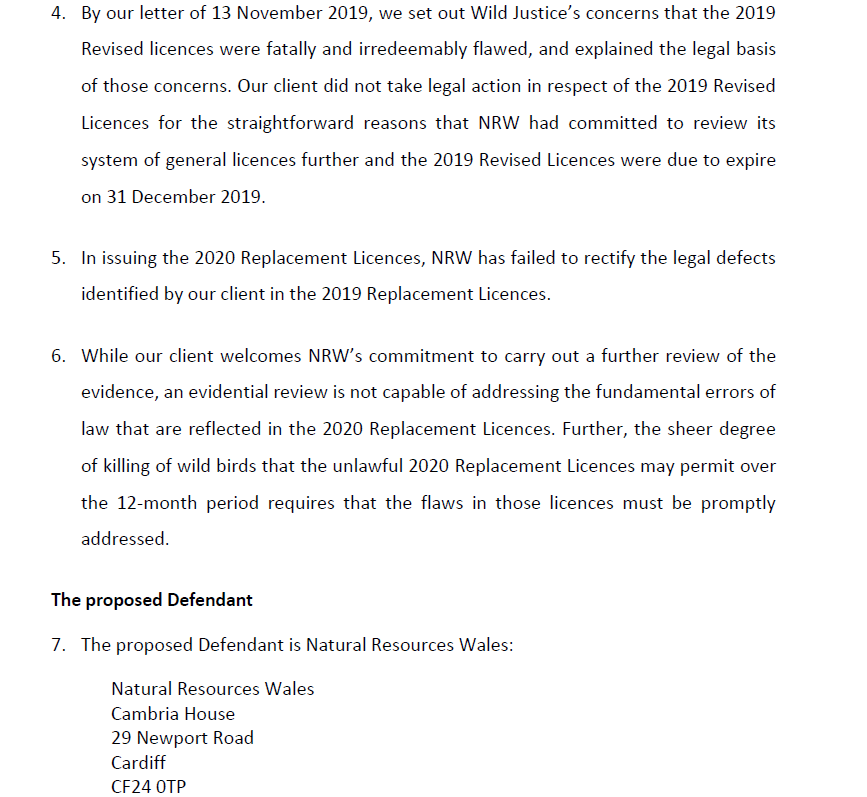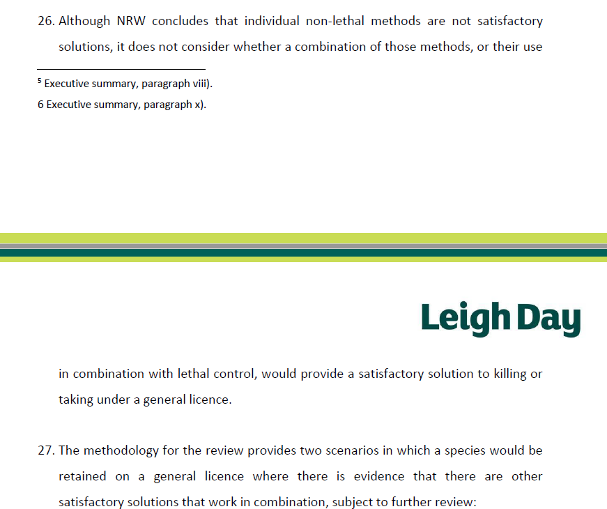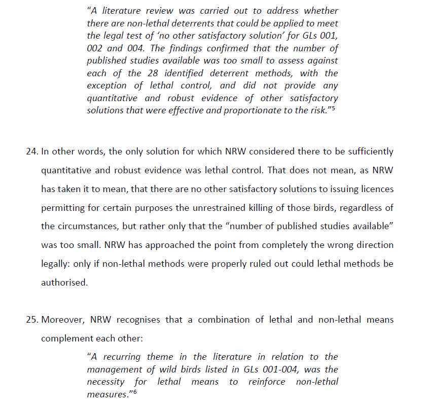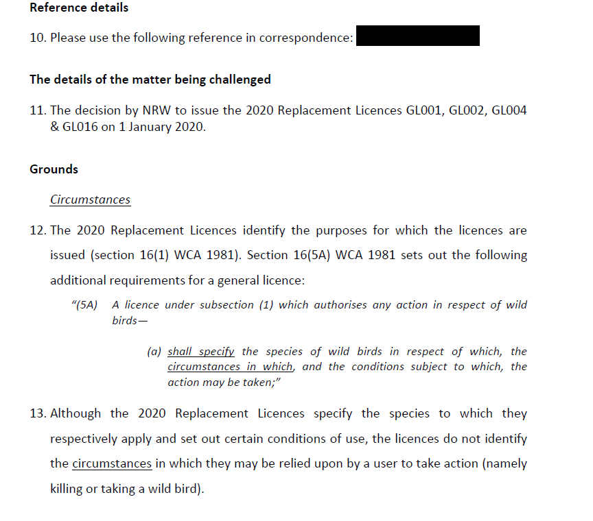 As always, Wild Justice’s main interest is in the general licence which applies to lethal control of birds for so-called conservation purposes but since the legal flaws we have identified with that general licence apply to all the general licences issued by NRW then there is little point in trying to differentiate between them. The farming industry should reflect on that.