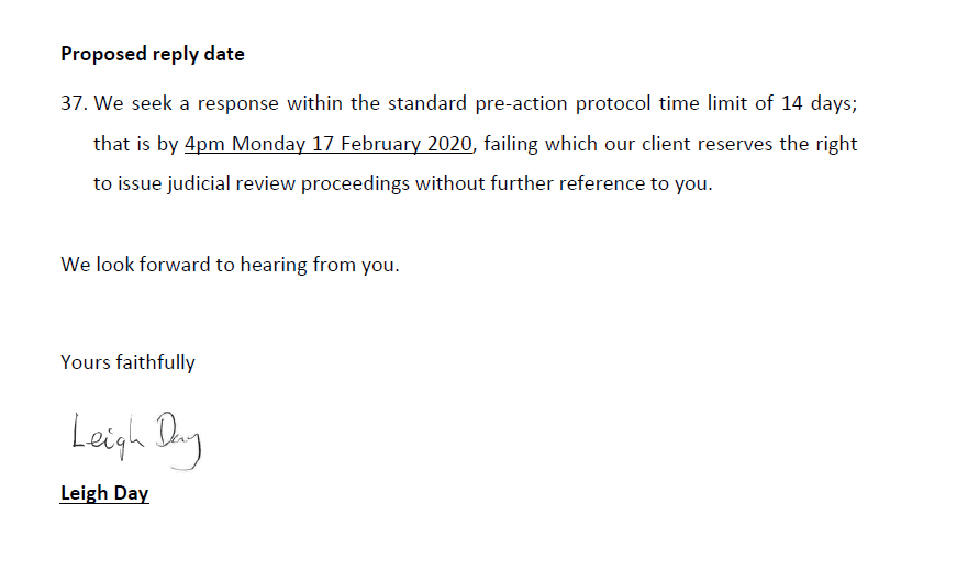 It won’t have come as a shock to them as we have corresponded with them on this matter.