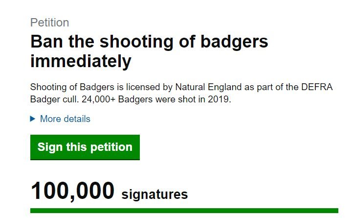 Yesterday our petition to end the shooting of Badgers passed 100,000 signatures. Thank you for all your support.