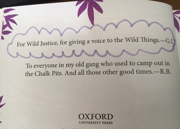Gill has been a generous supporter, in lots of helpful ways, to Wild Justice over the few years we have been in existence and we’re touched that this book has a dedication to us.