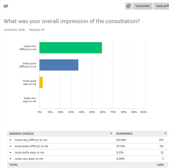 Question 7 – we asked our respondents whether, having looked at Defra’s question 5, and looked for the stated objective, how easy would they find it to answer Defra’s question 5, right now.
