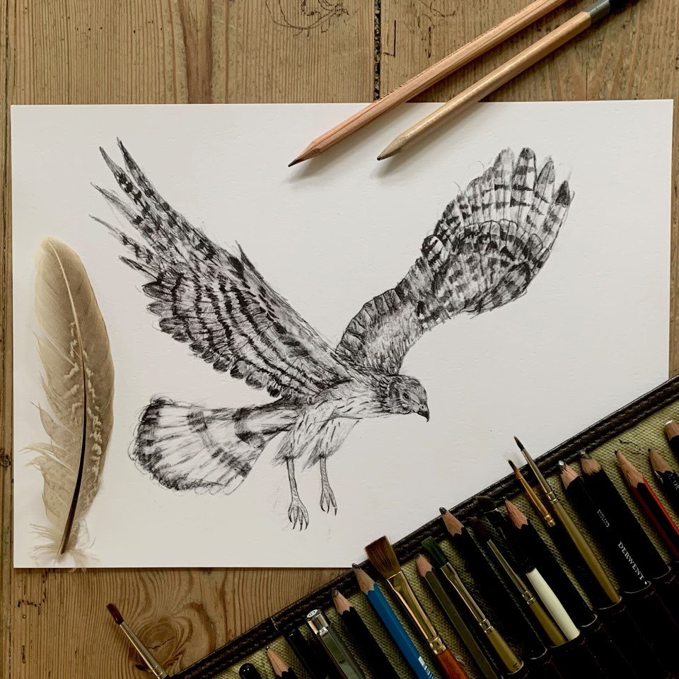 Benji drew this Hen Harrier especially for Hen Harrier Day 2022, and all the proceeds from sales of his Hen Harrier card and print, Goshawk card and print, Peregrine Falcon, Badger and Fox cards, will go to help Wild Justice.